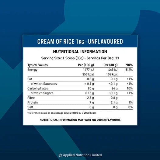 Energía limpia, digestión ligera y alto rendimiento. La Crema de Arroz Applied Nutrition 1 KG sabor Frambuesa ofrece carbohidratos de rápida asimilación ideales para deportistas que buscan fuerza, volumen y recuperación eficiente. Brinda energía constante, una digestión suave y un perfil nutricional diseñado para mejorar el rendimiento sin causar pesadez.